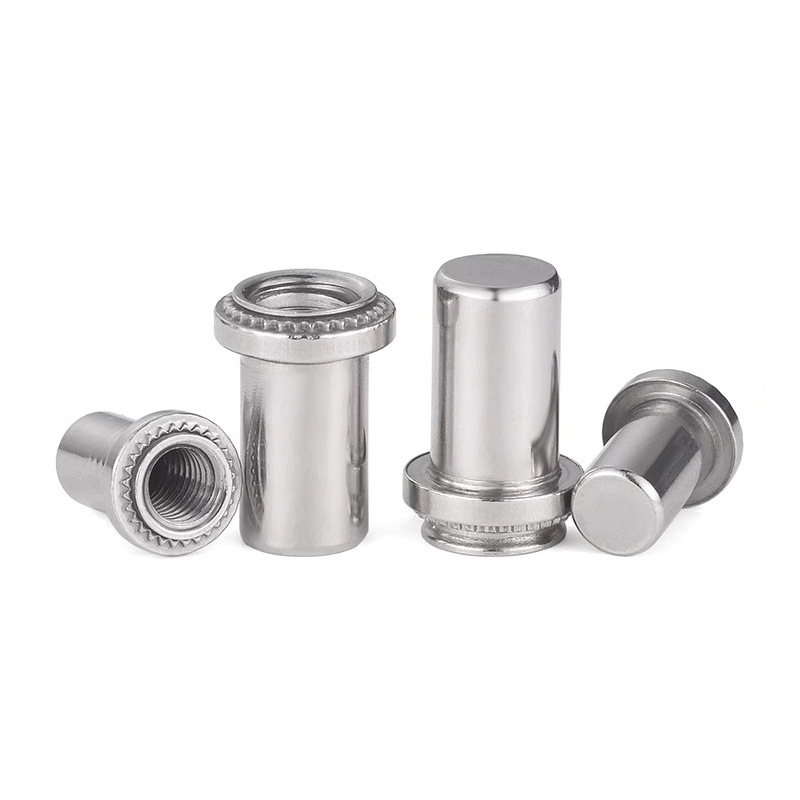 Upang mai -install ang carbon steel sealing clinching nut, kailangan mo ng isang dalubhasang tool sa clinching at die set na eksaktong tumutugma sa laki ng nut. Una, ilagay ang nut sa isang pre-punched hole sa sheet metal. Pagkatapos ay nalalapat ang tool na kinokontrol na presyon, na ginagawang lumubog ang piloto ng nut at knurl sa nakapalibot na metal. Ang proseso ng malamig na bumubuo na ito ay nakakulong sa hindi kinakalawang na asero na nut sa lugar para sa mabuti at sa parehong oras, pinaputok nito ang built-in na sealing washer laban sa panel. Iyon ay kung paano ito lumilikha ng leak-proof seal na ginagawang natatangi ang mga mani na ito.