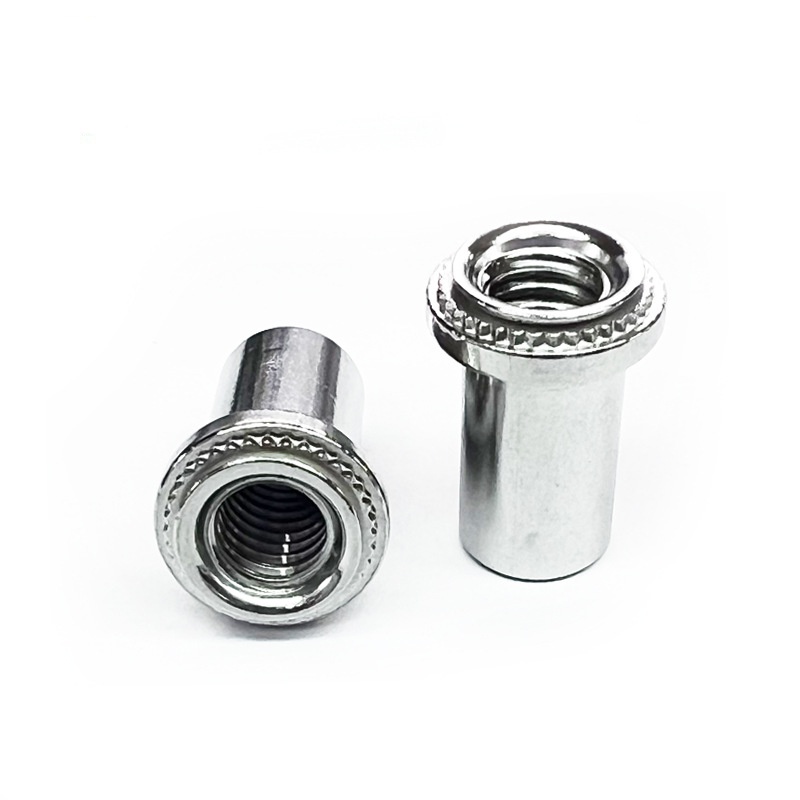 Ang carbon steel sealing clinching nuts ay isang uri ng fastener na ginagamit para sa pagkonekta ng mga manipis na plato o sheet metal. Ang mga ito ay gawa sa carbon steel, tempered at quenched upang madagdagan ang tigas, at ang ibabaw ay galvanized o kung hindi man ay ginawang kaagnasan-lumalaban.