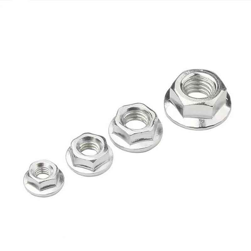 Mayroong maliit na mga serrasyon sa ilalim ng flange. Ang mga ito ay tumutulong sa kanila na pigilan ang panginginig ng boses, kaya hindi sila maluwag kapag may mga gumagalaw na naglo -load. Iyon ay isang malaking plus kumpara sa paggamit ng isang regular na nut na may hiwalay na tagapaghugas ng pinggan.