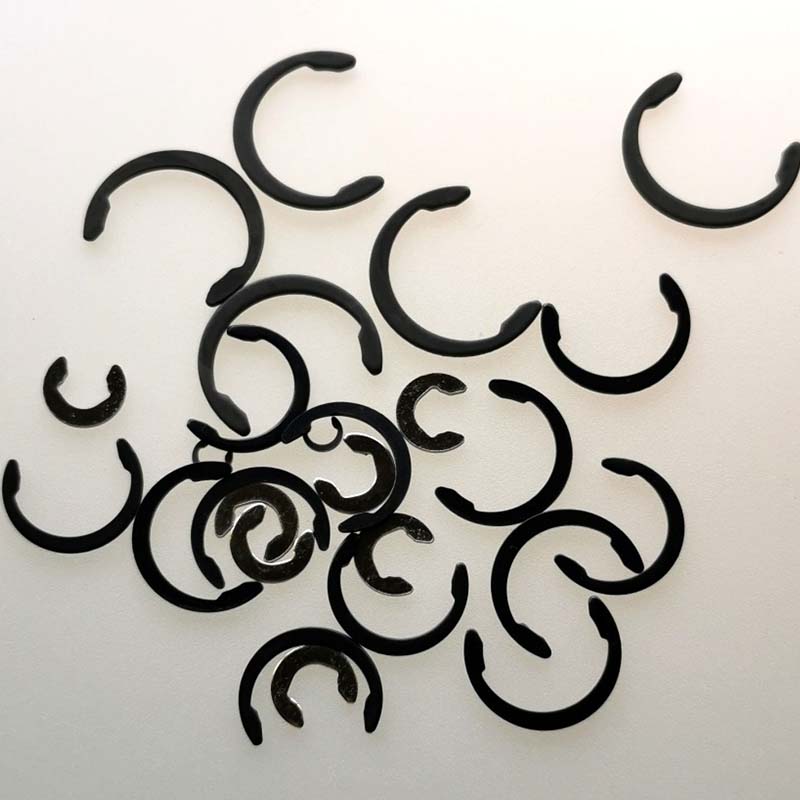 Ang mataas na katumpakan na tagsibol na pagpapanatili ng mga singsing ay sumunod sa mga pandaigdigang pamantayan tulad ng ISO, DIN at ANSI. Saklaw sila ng diameter mula 2 mm hanggang 500 mm. Ang panloob na singsing ay maaaring magamit para sa mga bores hanggang sa 300 mm at ang panlabas na singsing ay maaaring magamit para sa mga shaft hanggang sa 120 mm. Ang kapal ay saklaw mula sa 0.3 mm hanggang 3 mm, depende sa kinakailangang kapasidad ng pag -load. Magagamit ang mga ito sa parehong sukat ng sukatan at imperyal upang magamit ito sa iba't ibang mga system.
