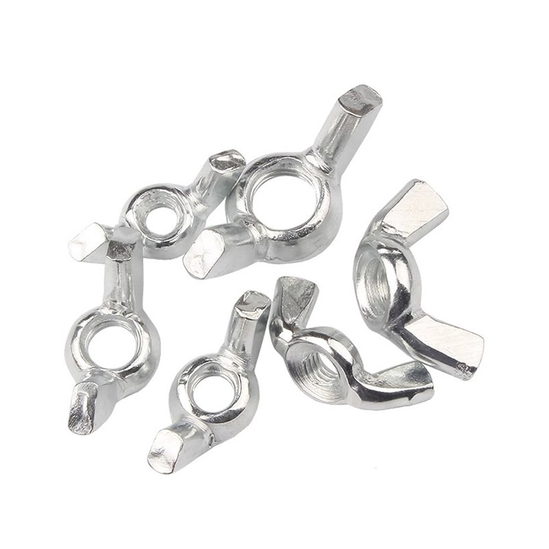 Ang Metal Round Wing Nut ay isang manu-manong tightened fastener na may dalawang pabilog na "wings" (i.e. wing plates) at may sinulid na gitnang bahagi. Ang mga ibabaw ng mga wing plate na ito ay makinis at kurbadong palabas, na nagbibigay-daan sa iyong madaling higpitan at maluwag ito nang walang anumang kahirapan. Wala itong matulis na gilid na maaaring makasakit sa iyong mga daliri. Ang metal na materyal na ito - karaniwang carbon steel at pinahiran ng zinc o hindi kinakalawang na asero - ay nananatiling matibay at matibay kahit na pagkatapos ng paulit-ulit na paggamit. Ang mga thread ay nabuo sa pamamagitan ng pag-roll at napakakinis habang ginagamit. Ginagamit ito kasabay ng mga karaniwang bolts at washers. Ito ay karaniwang matatagpuan sa mga takip, clamp, adjustable na kasangkapan, o anumang bahagi na madalas na binubuwag.