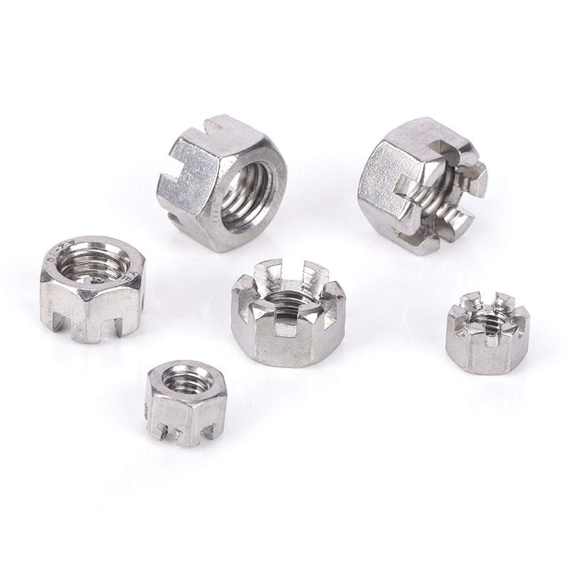 Isang bagay na dapat panoorin: ang mga puwang ay kailangang nakahanay sa bolt hole pagkatapos ng torquing. Karamihan sa mga off-the-shelf na bersyon ay may anim na puwang, bawat isa ay nakahanay sa isang patag sa halip na isang sulok, kaya karaniwan mong maipasok ang pin nang walang labis na pag-torquing. Kung kailangan mo ng partikular na pagkakahanay, sulit na kumpirmahin ang oryentasyon ng slot para sa maramihang mga order.