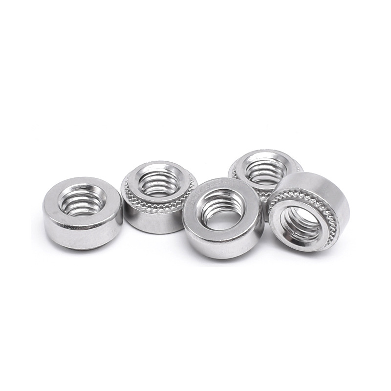 Ang isang permanenteng clinching nut ay isang permanenteng fastener na ginagamit para sa sheet metal. Hindi tulad ng mga regular na mani na nangangailangan ng hinang o pag -thread, maaari itong mai -install nang mabilis gamit ang puwersa ng pindutin, na lumilikha ng isang malakas, maaasahang sinulid na lugar upang ilakip ang mga bagay. Mayroon itong isang tumpak na ginawang piloto at isang knurled shank. Kapag naka -install, ang mga bahaging ito ay gumagalaw sa materyal na inilalagay nila, na bumubuo ng isang kandado.
