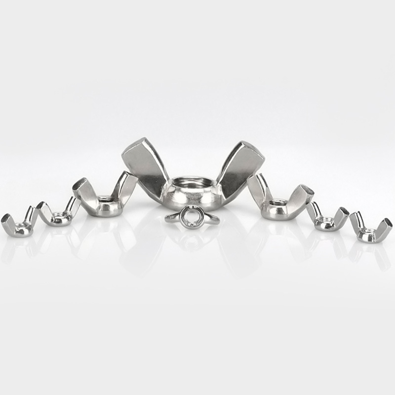 Ang isang bilog na hugis ng pakpak na nut ay isang manual tightening fastener na may dalawang pabilog na protrusions (mga pakpak) at isang may sinulid na gitnang bahagi. Hindi ito nangangailangan ng mga tool - gamitin lamang ang iyong mga daliri upang higpitan o paluwagin ito. Ang mga pabilog na pakpak ay ginagawang madaling hawakan, habang ang mga kulot na sinulid ay nagsisiguro ng isang mahigpit na akma. Kasama sa mga karaniwang materyales ang galvanized carbon steel (angkop para sa tuyong panloob na kapaligiran) o 304/316 hindi kinakalawang na asero (angkop para sa mahalumigmig o panlabas na mga lokasyon).