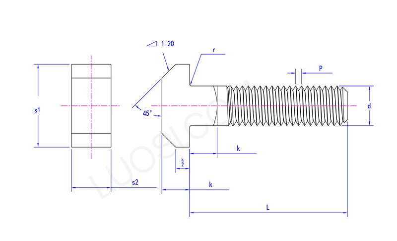 Ang square leeg t bolts ay lubos na nakikilala. Nakita mula sa gilid, ang bahagi kung saan kumokonekta ang ulo sa tornilyo, iyon ay, ang leeg, ay isang regular na parisukat, maayos at parisukat. Bukod dito, ang haba ng leeg ay karaniwang hindi masyadong mahaba at sa pangkalahatan ay tungkol sa parehong kapal ng sangkap na konektado sa. Ang bahagi ng tornilyo ay isang cylindrical metal rod, at ang kapal nito ay nag -iiba ayon sa mga pagtutukoy ng bolt. Ang ibabaw ng tornilyo ay nakaukit ng mga thread, na katulad ng hugis sa mga karaniwang bolt thread na nakikita natin, sa isang hugis ng spiral, at ginagamit upang higpitan ang nut.