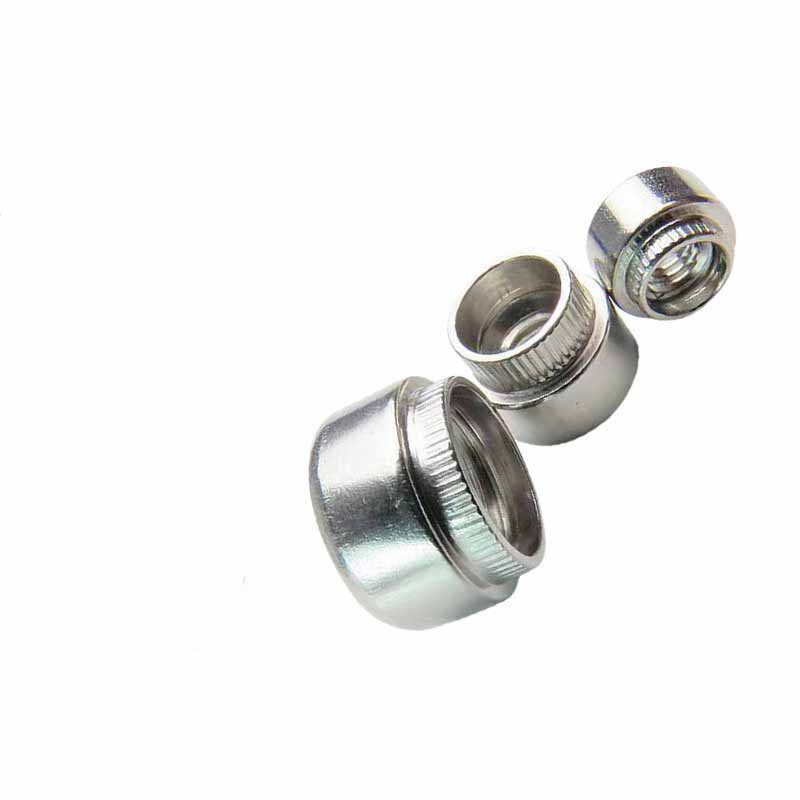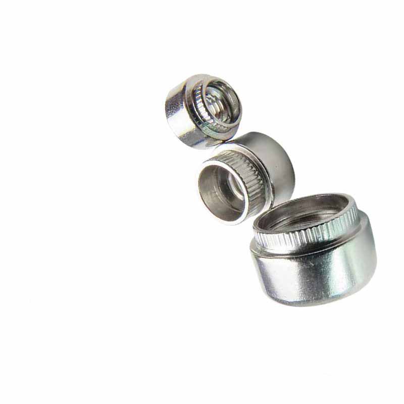 Ang hindi kinakalawang na asero na self-clinching round rivet bush na ito ay ginawa para sa permanenteng, panginginig ng boses-proof na pangkabit. Narito kung paano ito gumagana: Dinikit mo ang pinalawak na bahagi sa ibaba sa isang pre-drilled hole. Kapag na -install mo ito, karaniwang may isang rivet gun o isang pindutin, ang bahaging ito ay nagpapahiwatig sa likuran (ang gilid na hindi mo makita) at bulge out, na lumilikha ng isang solidong mekanikal na lock. Kasabay nito, ang flange at knurling sa nut ay mahigpit na hinawakan ang ibabaw at kumalat ang presyon kapag pinigilan mo ito.