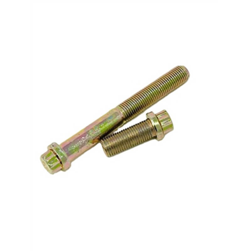 Ang Steel High Tensile 12 Point Flange Bolts na ito ay may karaniwan at praktikal na hugis na walang mga karagdagang detalye ng dekorasyon. Ang tuktok ay isang 12-panig na ulo, na ginawa upang gumana sa isang katugmang 12-point socket para sa paghihigpit o pagluwag. Sa ilalim mismo ng ulo ay may malawak at patag na flange na gumagana tulad ng built-in na washer, kaya hindi mo na kailangan ng hiwalay na washer para sa karamihan ng mga trabaho. Ang baras sa ibaba ng flange ay tuwid, na may makinis, pantay na mga sinulid na umaagos pababa upang magkasya ang mga mani o mga butas na nauna nang tinapik. Walang magaspang na gilid o burr na magpapahirap sa pag-install. Ang buong fastener ay compact at solid, ginawa upang umupo nang patag laban sa mga ibabaw para sa isang mahigpit na fit. Ang bawat piraso ay may parehong eksaktong mga sukat, kaya ang bawat isa ay magkamukha at magkasya—ginagawa nitong madaling gamitin para sa paulit-ulit na gawain sa pagpupulong o mabilis na pagpapalit.