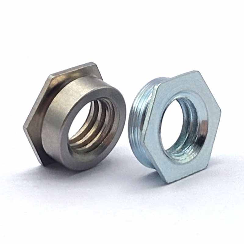Ang UN insert nut ay isang heat-treated stainless steel nut.Ang mga ito ay huminto sa mga thread mula sa pagtanggal sa mga malambot na materyales, maaaring pumasa sa mga pagsubok ng asin-spray na tumatagal ng higit sa 10,000 oras (ASTM B117), at magtrabaho sa mga temps mula -200 ° C hanggang 800 ° C. Kumpara sa mga welded na bahagi, mas magaan ang mga ito, na bumabawas sa bigat ng buong sistema.