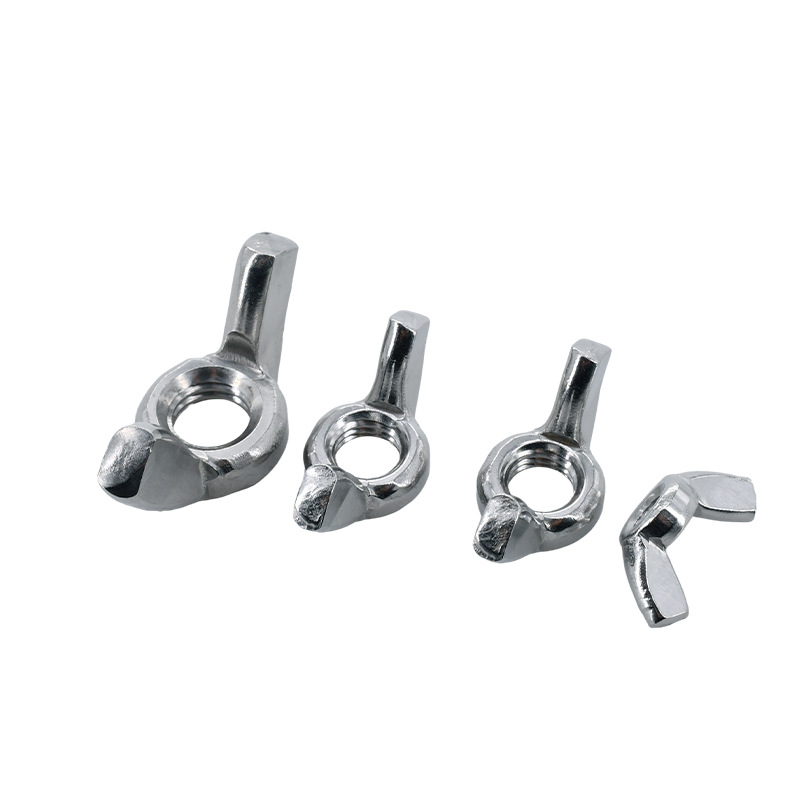 Ang ilalim ng nut ay patag, walang flange o ngipin. Ang panloob na thread ay ganap na katugma sa mga karaniwang bolts/screw. Ang taas at kapal ng mga piraso ng pakpak ay tataas habang lumalaki ang laki.